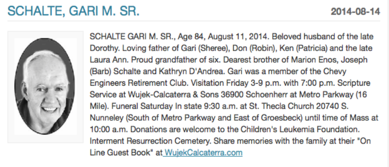 Detroit, served in the U.S. Navy, lived in Sterling Heights and finally in Bloomfield Hills. In